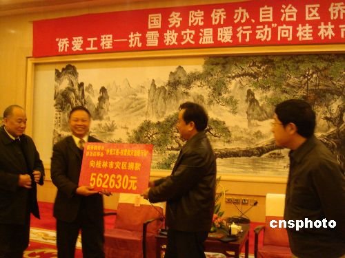 “僑愛工程—抗雪救災(zāi)溫暖行動(dòng)”向桂林災(zāi)區(qū)捐款