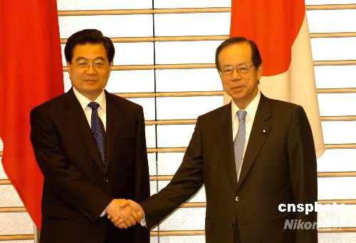 5月7日上午,正在日本進行國事訪問的中國國家主席胡錦濤和日本首相福田康夫在東京首相官邸舉行會談。中新社發(fā) 朱沿華 攝