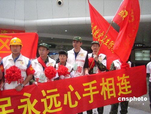 五月二十日,首批海南青年醫(yī)療衛(wèi)生抗震救災(zāi)志愿者服務(wù)隊(duì)共二十五人,從?诿捞m機(jī)場(chǎng)出發(fā),前往四川綿陽平武縣抗震救災(zāi)。該批具有專業(yè)醫(yī)療技能及抗震經(jīng)驗(yàn)的志愿者,來自海南省人民醫(yī)院、海南省及各市縣疾控中心,由海南省衛(wèi)生廳及共青團(tuán)海南省委共同招募。