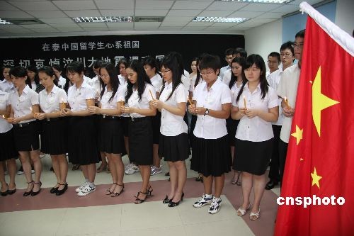 圖:在泰中國(guó)留學(xué)生哀悼地震遇難同胞