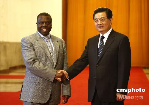 9月16日,中國(guó)國(guó)家主席胡錦濤在北京人民大會(huì)堂與幾內(nèi)亞比紹總統(tǒng)維埃拉舉行會(huì)談。中新社發(fā) 盛佳鵬 攝