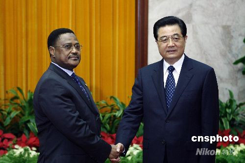 9月16日,中國國家主席胡錦濤在北京人民大會堂會見尼日爾總理奧馬魯。中新社發(fā) 盛佳鵬 攝