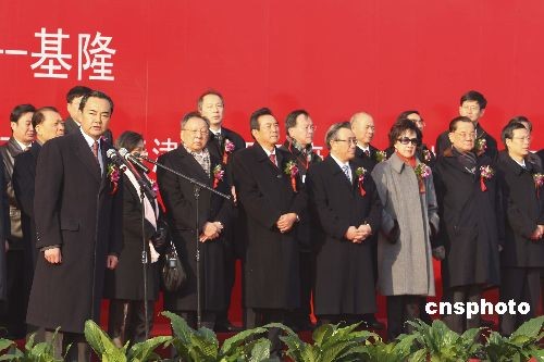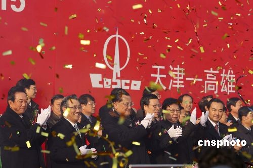 12月15日,海峽兩岸海上直航首航儀式在天津港舉行,中共天津市委書記張高麗、全國政協(xié)副主席鄭萬通、中國國民黨榮譽主席連戰(zhàn)、中國交通運輸部部長李盛霖、國臺辦主任王毅、海峽兩岸關系協(xié)會會長陳云林共同為首航船舶開啟按鈕。中新社發(fā) 盛佳鵬 攝