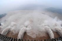 7月19日,三峽大壩開啟6個(gè)泄洪深孔和一個(gè)排漂孔泄洪。當(dāng)日上午8時(shí),三峽水庫入庫流量增至58000立方米/秒,再創(chuàng)今年入汛以來新高。長(zhǎng)江三峽集團(tuán)公司目前正按長(zhǎng)江防總最新調(diào)度令,從19日10時(shí)起,再度加大泄洪力度,將出庫流量調(diào)高到40000立方米/秒,積極迎戰(zhàn)建庫以來的最大洪峰。據(jù)長(zhǎng)江水文局最新預(yù)報(bào),長(zhǎng)江上游正在形成一場(chǎng)大洪水,洪峰流量將逼近70000立方米/秒。 鄭家裕 攝(圖片來源:新華網(wǎng))