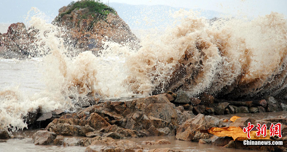 10月21日上午,浙江溫嶺市城南鎮(zhèn)后灣塘堤壩上,正在退去的潮水夾雜著海風(fēng)拍打岸邊。受今年第13號(hào)超強(qiáng)臺(tái)風(fēng)“鲇魚”的影響,當(dāng)日,浙江溫嶺市沿海海面出現(xiàn)9到11級(jí)大風(fēng)。圖片來(lái)源:cnsphoto 金云國(guó) 攝
