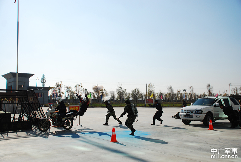 武警兵團指揮部解救“被劫持人質(zhì)”演練