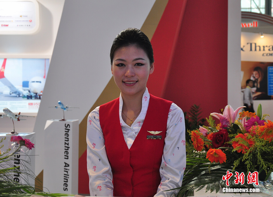 每一屆珠海航展都會(huì)有許多佳麗現(xiàn)身,而這次航展上的直升機(jī)模特更是讓觀眾大飽眼福。中新網(wǎng)記者 陳海峰 攝