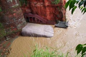 洪水漫至樂山大佛腳趾