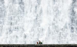 英國水壩泄洪形成“瀑布”