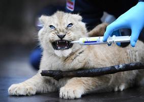 小獅子接種防疫針 表情惹人愛(ài)