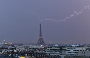 法國(guó)埃菲爾鐵塔被閃電“擊中”