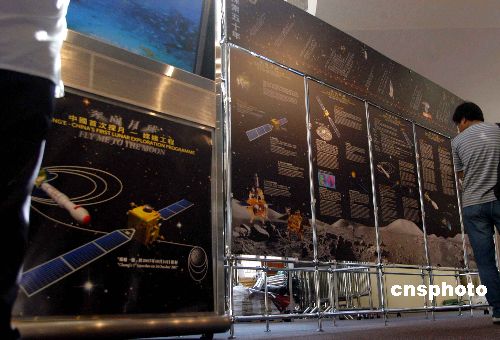 中國首枚探月衛(wèi)星嫦娥一號,將于二十四日傍晚發(fā)射升空。香港太空館由當(dāng)日至年底,舉辦關(guān)于嫦娥一號的免費(fèi)展覽,介紹中國探月計劃。中新社發(fā) 譚達(dá)明 攝