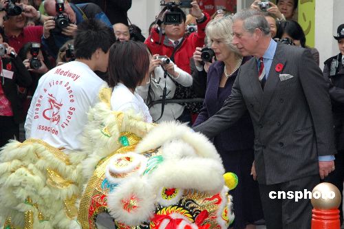 當(dāng)?shù)貢r(shí)間十一月一日上午,英國(guó)王儲(chǔ)查爾斯夫婦到倫敦華埠參觀訪問(wèn)。中新社發(fā) 程嘉揚(yáng) 攝