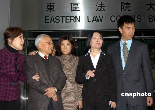 蔣麗莉(右二)在父親蔣震(左二)及家人的陪伴下,到香港東區(qū)裁判法院應(yīng)訊。