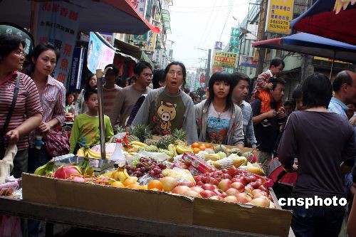 4月7日,臺灣“行政院主計處”公布的最新統(tǒng)計數(shù)字顯示,3月份消費者物價指數(shù)(CPI)同比增長3.96%,其中水果類漲幅最大,香蕉漲幅逾一倍。圖為女攤販推著一整車水果,穿過熱鬧的桃園縣大溪鎮(zhèn)老街。中新社發(fā) 董會峰 攝