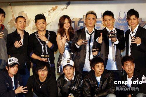 4月24日,《功夫之王》在臺灣首映,兩位男主角成龍、李連杰未能到場參加,由主題歌曲《預感》的制作人李玖哲和片尾曲《HERO》演唱組合“三角COOL”成員一起為臺北首映式捧場。中新社發(fā) 杜洋 攝