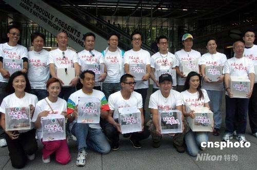 五月十六日,香港無線電視藝員在中環(huán)鬧市為四川大地震災(zāi)民募款。中新社發(fā) 譚達明 攝