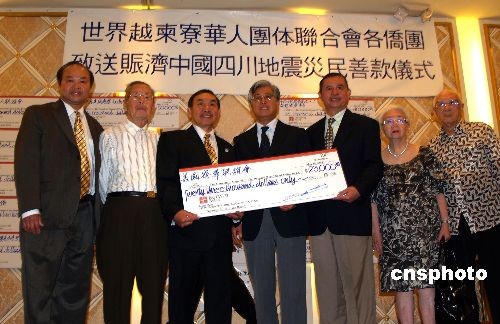 世界越柬寮團體聯(lián)合會向地震災區(qū)募款50萬美金