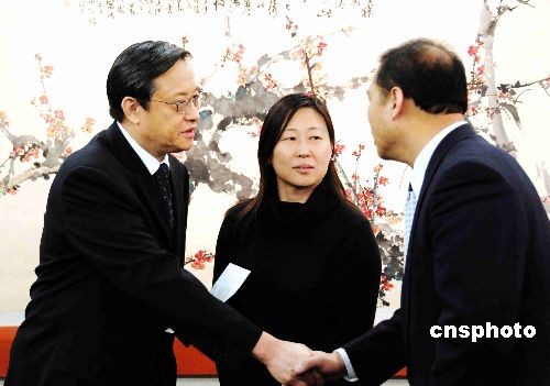 當?shù)貢r間五月二十日下午,大華府華僑華人及留學生代表來到中國駐美使館,悼念四川大地震死難同胞并舉行向中國地震災區(qū)捐款儀式。大華府華僑華人迄今總共為災區(qū)捐款近三十萬美元。圖為周文重大使(左)代表災區(qū)接受北京大學校友會代表呂玫(中)、穆毅瑞(右)和其他僑社捐款,并感謝僑胞們一片愛心。
