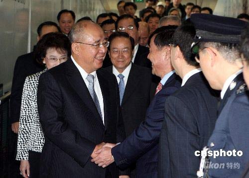國(guó)民黨主席吳伯雄一行抵達(dá)香港國(guó)際機(jī)場(chǎng)
