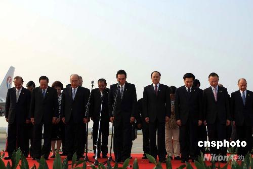 吳伯雄、陳云林等在機場為四川地震遇難者默哀