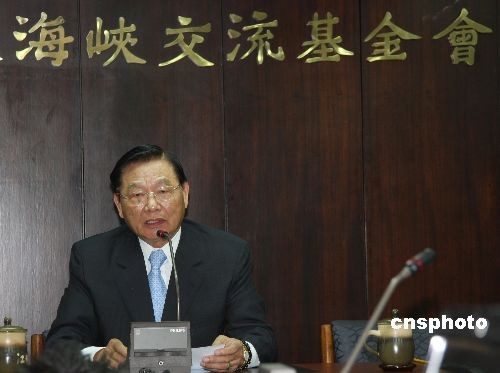 10月21日中午,臺(tái)灣海基會(huì)董事長江丙坤召開臨時(shí)記者會(huì),譴責(zé)暴力襲擊來臺(tái)灣進(jìn)行學(xué)術(shù)訪問的海協(xié)會(huì)副會(huì)長、廈門大學(xué)傳播學(xué)院院長張銘清。中新社發(fā) 耿軍 攝