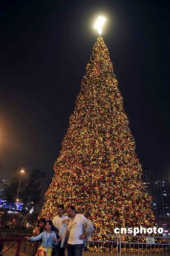 十一月下旬,香港各大商場斥巨資推廣圣誕,以豪裝刺激消費意欲。圖為香港奧海城巨型圣誕樹裝飾。中新社發(fā) 譚達(dá)明 攝