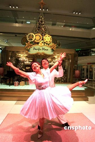 十二月十六日,香港太古廣場上演別開生面的百老匯式歌舞表演,營造圣誕節(jié)氣氛。中新社發(fā) 張勤 攝