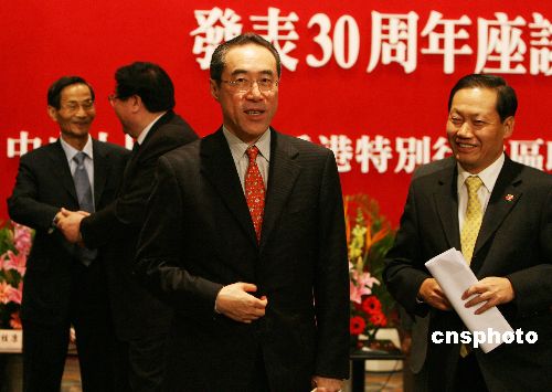 一月六日,紀念《告臺灣同胞書》發(fā)表三十周年座談會在香港會議展覽中心舉行,中央政府駐港聯(lián)絡(luò)辦主任高祀仁、香港特區(qū)政府政務(wù)司司長唐英年以及香港各界二百多人與會。中新社發(fā) 武仲林 攝