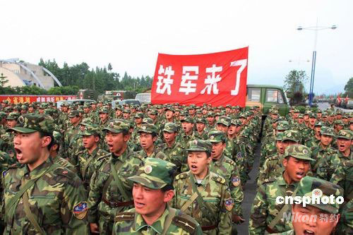 圖:中國“鐵軍”馳援四川地震災(zāi)區(qū)