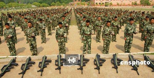 5月19日14時28分,武警駐無錫某部官兵在訓練場向汶川大地震遇難同胞默哀3分鐘。當天,武警部隊全體官兵在各自崗位上以不同方式向地震遇難者致以深切哀悼。據(jù)武警指揮中心5月16日統(tǒng)計,在這次四川抗震救災(zāi)行動中,武警部隊已出動近30000名官兵,共轉(zhuǎn)移、救治群眾8.9萬余人,搜救、挖掘被壓埋群眾6270人,目前全軍和武警部隊捐款已達1.5億多元。中新社發(fā) 李 杰 攝