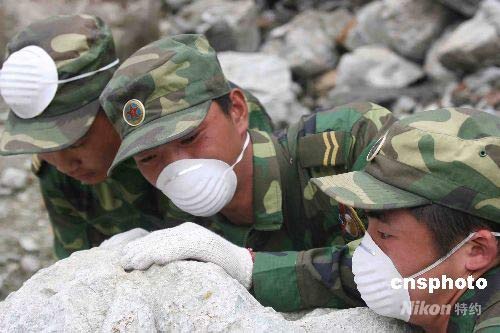 5月21日,在震中汶川縣映秀鎮(zhèn)抗震救災(zāi)的解放軍士兵胡志友路過家鄉(xiāng)時(shí)看到家的方向已是一片廢墟,胡志友卻沒有停下前進(jìn)的腳步。他說:“我的任務(wù)在映秀鎮(zhèn),漩口有我的戰(zhàn)友在,他們會(huì)幫助我的家人的!敝行律绨l(fā) 曾憲平 攝