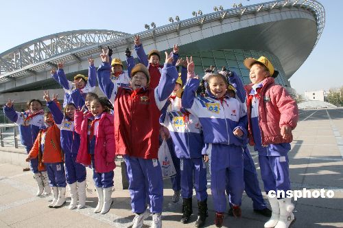 十一月十七日,來自北京回龍觀新龍小學(xué)的農(nóng)民工子女,興致勃勃地參觀了北京理工大學(xué)體育館暨08年奧運(yùn)排球比賽場館。中新社發(fā) 張勤 攝