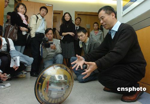 一月八日,二零零七年十二月剛剛當(dāng)選的中國(guó)工程院院士、著名空間機(jī)械人與智能控制專(zhuān)家、香港中文大學(xué)機(jī)械與自動(dòng)化工程學(xué)講座教授徐揚(yáng)生教授會(huì)見(jiàn)傳媒,介紹部分最新科研成果。中新社發(fā) 鄧慶樂(lè) 攝