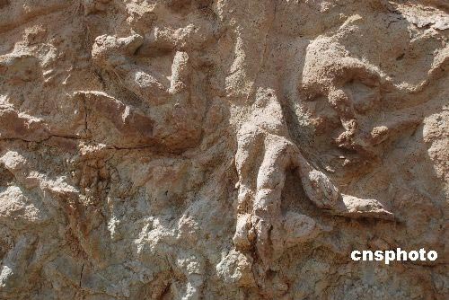 中德古生物學(xué)家4月10日宣布,日前在中國新疆吐魯番盆地鄯善地區(qū)侏羅紀(jì)地層中首次發(fā)現(xiàn)一批恐龍足跡化石。目前已發(fā)現(xiàn)恐龍足印150余個,分布范圍長達(dá)100余米,這批恐龍生活在距今約1.65億年前的侏羅紀(jì)中期,身長約5至6米,屬于群居小型肉食類恐龍。 至少包括兩種類型,均屬于肉食性的獸腳類恐龍。 此次鄯善地區(qū)恐龍足跡化石的發(fā)現(xiàn),在新疆尚屬首次。它填補(bǔ)了新疆地區(qū)恐龍足跡研究的空白。中新社發(fā) 緱燁 閆軍 攝
