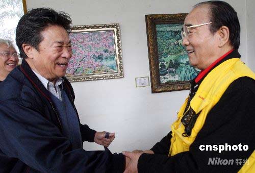 4月15日,以北京植物園景觀為專題的“王石之油畫展”在植物園盆景園內(nèi)開幕,是次畫展是由曾畫毛澤東巨像的中國著名畫家王石之創(chuàng)作完成,展出的40幅油畫都是以一畫一景的形式從植物園的春天到冬天不同季節(jié),不同區(qū)域的自然風(fēng)光、園林美景、人文古跡等優(yōu)美景觀。圖為李光曦(左)與高占祥出席開幕式。中新社發(fā) 錢興強(qiáng) 攝
