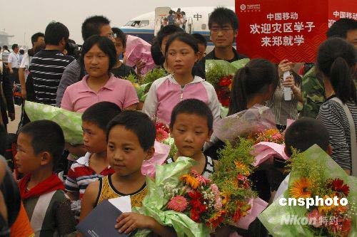 5月26日下午4時許,36名來自四川汶川大地震災區(qū)的中小學生抵達河南鄭州,開始了他們新的求學生涯。中新社發(fā) 史寶銀 攝