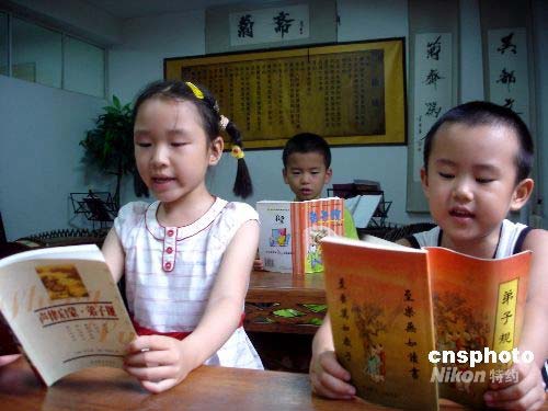 7月14日,孩子們在蘇州一家私塾學(xué)習(xí)古文。暑假期間,蘇州的一些私塾開設(shè)暑期班,教孩子們學(xué)習(xí)中國古典文學(xué),以培養(yǎng)孩子的文化底蘊(yùn)、陶冶情操。中新社發(fā) 王建康 攝