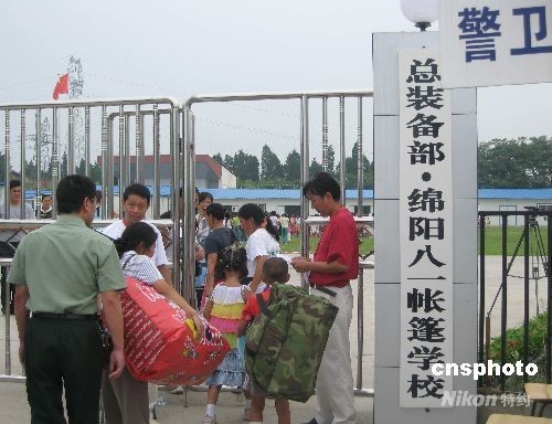 8月20日,在汶川大地震中受損嚴重的四川省綿陽市1000余所中小學全部開學,其中板房學校有612所。圖為北川學生進入由總裝備部出資修建的綿陽八一帳蓬學校。據介紹,該學校將接納北川羌族自治縣曲山小學和劉漢希望小學的九百余名學生。中新社發(fā) 霍潺 攝