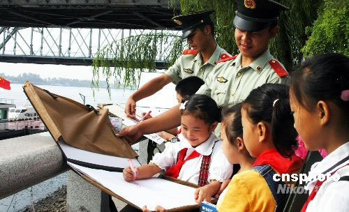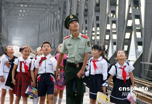9月9日,開學(xué)伊始,又逢教師節(jié),遼寧丹東邊防檢查站邀請(qǐng)駐地多所小學(xué)師生參觀中朝友誼橋,與邊防戰(zhàn)士一同描繪第二故鄉(xiāng)美景。中新社發(fā) 陳浩浩 攝