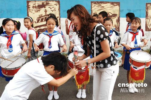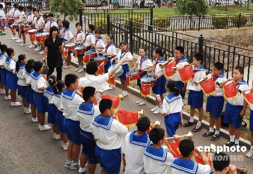 9月10日早上,在遼寧省大連市甘井子區(qū)金二小學(xué)學(xué)校門(mén)前,鼓樂(lè)喧天,學(xué)生們將鮮花獻(xiàn)給每位老師,表達(dá)對(duì)老師的節(jié)日祝福。當(dāng)日是我國(guó)第24個(gè)教師節(jié),各地院校師生開(kāi)展多種形式的活動(dòng),慶賀教師節(jié)。中新社發(fā) 劉德斌 攝
