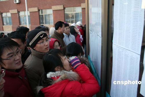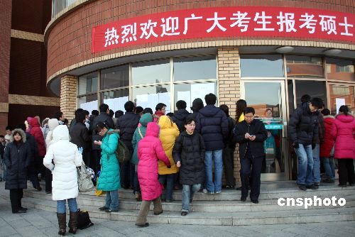 1月9日,山東濱州眾多參加碩士研究生考試的學(xué)子蜂擁到山東濱州學(xué)院考點(diǎn),提前確認(rèn)考場(chǎng)。據(jù)悉,山東濱州共有3800余名考生報(bào)名參加。1月10日,2009年全國(guó)碩士研究生入學(xué)統(tǒng)一考試開考,共有124.6萬(wàn)名考生在全國(guó)各地應(yīng)試。中新社發(fā) 郭志華 攝