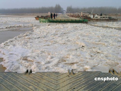 1月14日,受持續(xù)低溫天氣影響,山東黃河濟南段出現(xiàn)淌凌。據(jù)介紹,隨著氣溫逐漸下降,流凌密度將會進一步加大。中新社發(fā) 張慶民 攝