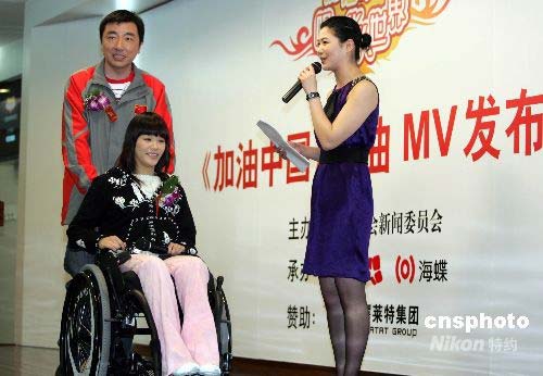 4月11日,奧運(yùn)冠軍楊凌推著桑蘭登臺暢談錄制《加油中國》歌曲的心得。當(dāng)日,體育門戶網(wǎng)站華奧星空與華人唱片公司海蝶在北京發(fā)布“加油中國—唱響華人世界”系列活動主題歌《加油中國》。該歌曲由高敏、吉新鵬、雷聲、桑蘭、王海濱、王麗萍、刑傲偉、楊凌等八位體育明星共同錄制演唱。作者: 楊可佳