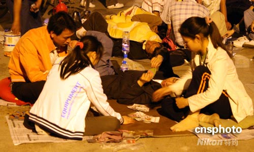 圖:四川地震后 成都市民聚集廣場過夜 (2)