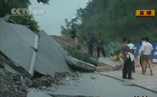 圖:綿陽市北川縣災情嚴重 公路擰成“麻花”(2)
