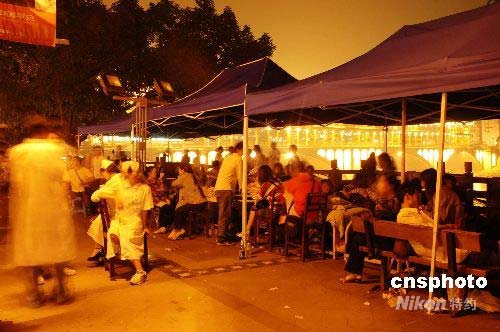 5月12日,汶川地震后雅安市有強(qiáng)烈震感。政府及時(shí)發(fā)布公告安定人心,醫(yī)院及時(shí)轉(zhuǎn)移病人到安全地方治療,醫(yī)護(hù)人員、公安干警一直堅(jiān)守崗位,群眾也在空曠地方搭帳篷過(guò)夜。中新社發(fā) 張國(guó)軍 攝