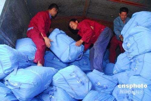 圖:安徽1.5萬(wàn)頂帳篷緊急運(yùn)往四川災(zāi)區(qū)