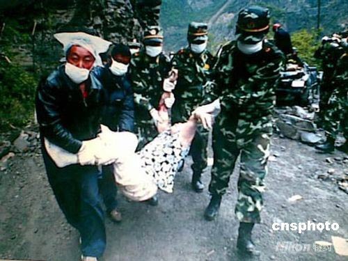 5月12日四川汶川發(fā)生7.8級地震后,武警重慶總隊黨委積極組織官兵投入抗震救災工作當中,在四川、重慶兩地展開救援保障工作。5月13日7時45分,趕赴汶川地震核心區(qū)域的該總隊500名官兵,途徑茂縣沙塆村疊海風景區(qū)時看到,因地震和大雨造成山石松動,山上滾下來的石塊將一輛小轎車和一輛從成都到九寨溝的大客車砸中并掩埋,總隊官兵當即就地展開救援工作。中新社發(fā) 周中余 攝