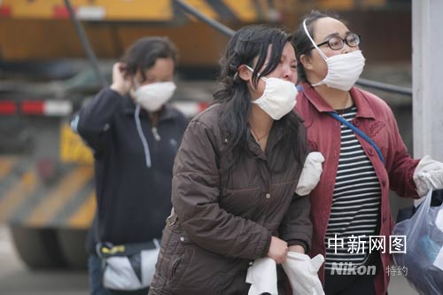 面對悲傷的人們,消防官兵所能做的就是與時間賽跑,搶救生命。 王亮 攝